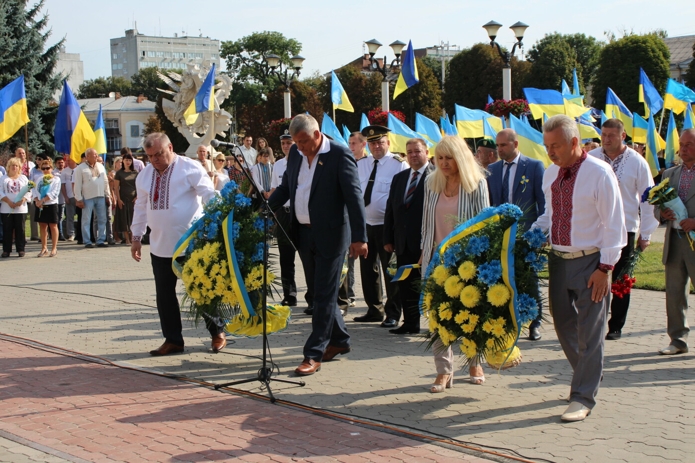 Традиційно хмельничани активно долучаються до свята. Піднявши прапор та виконавши Державний Гімн присутні хвилиною мовчання згадали усіх, хто віддав власне життя за вільну та незалежну Україну. Також поклали квіти до меморіальної стели пам’яті Героїв Небесної сотні та учасників АТО.