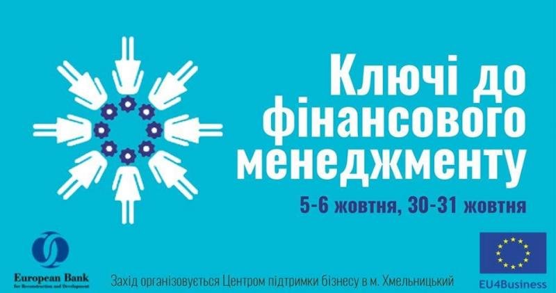 Центр підтримки бізнесу м. Хмельницький запрошує жінок-керівників та власниць малого чи середнього бізнесу взяти участь у тренінгу «Ключі до фінансового менеджменту», який відбудеться 5-6 та 30-31 жовтня 2017 року (два модулі) у м. Хмельницький (Агенція сталого розвитку АСТАР, вул. Героїв Майдану, 38). Захід підтримується Європейским банком реконструкції та розвитку в рамках ініціативи EU4Business Європейского Союзу.