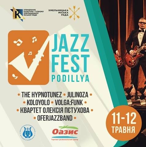 11-го та 12-го травня на вас чекає свято джазової музики «ПоділляДжазФест». На головній сцені фестивалю біля кінотеатру імені Тараса Шевченка виступатимуть відомі джазові колективи та музиканти країни. Своє мистецтво даруватимуть квартет Олексія Пєтухова, Julinoza, ОferJazzBend , «The Hypnotunez», тріо «KoloYolo», Ольга Лукачова – Volga:funk, хмельницькі оркестри та гурти. Спеціальний гість фестивалю – Танок на майдані Конго з проектом «Jazzy» – синтез джазу та хіп-хопу.