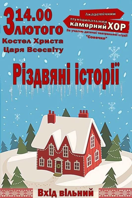 3 лютого о 14:00 у Костелі Христа Царя Всесвіту відбудеться концерт "Різдвяні історії" за участюХмельницький академічний муніципальний камерний хор.
