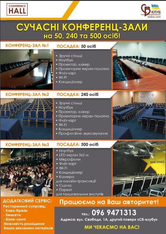Конференц-сервіс «Conference Hall | СВ-Клуб» в місті Хмельницькому має те, що Вам потрібно.