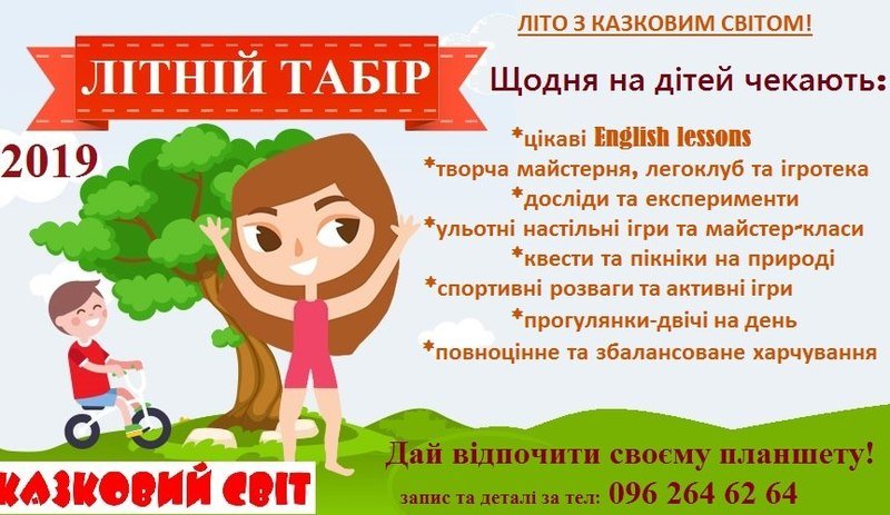 Пропонуємо Вам яскравий та захоплюючий табір для діток від 2-х до 10-ти років