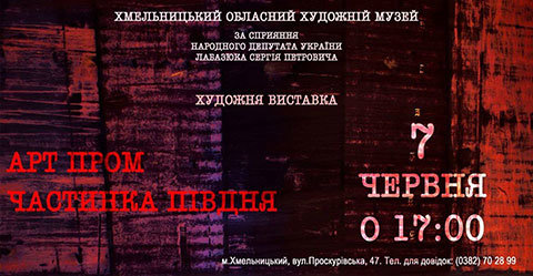 7 червня о 17.00 Хмельницький обласний художній музей запрошує на відкриття художньої виставки "Миколаїв Арт Пром. Частинка Півдня" (проект здійснюється за сприяння народного депутата України Сергія Петровича Лабазюка).