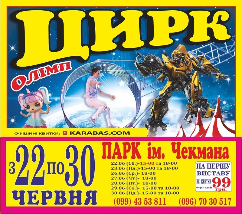 Каси цирку: +38(099) 43 53 811; +38(096) 70 30 517.