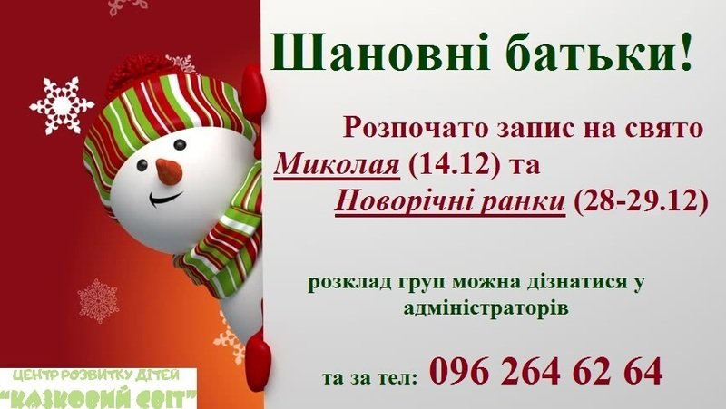 Сніговою ковдрою зима вкриває місто, а ми продовжуємо запис на свято Миколая!