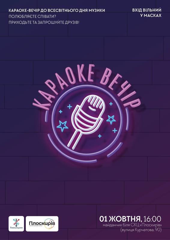 Полюбляєш співати? Запрошуємо тебе на осінній караоке-вечір, який влаштовує Спортивно-культурний центр "Плоскирів" до Всесвітнього Дня музики.