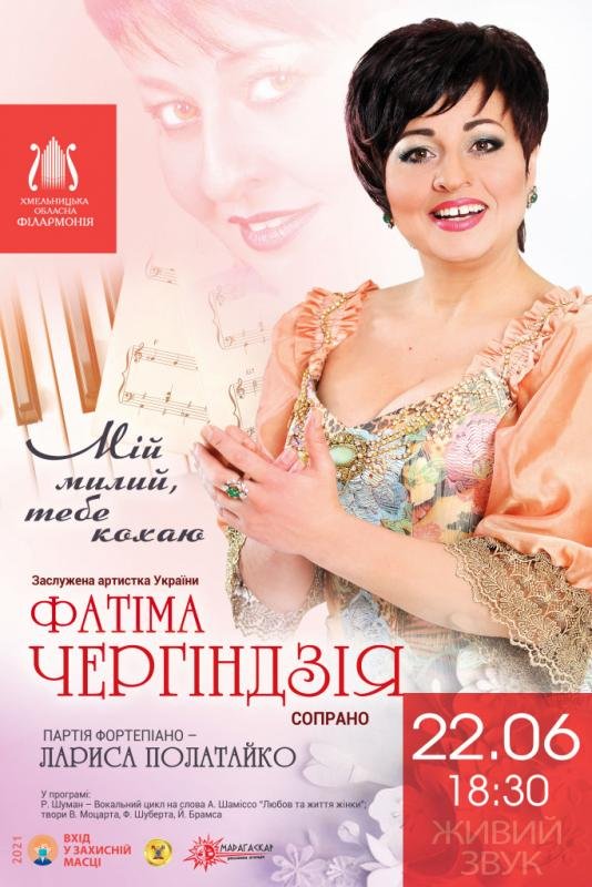 22 червня, вівторок о 18.30 до Хмельницької обласної філармонії запрошує Заслужена артистка України ФАТІМА ЧЕРГІНДЗІЯ на сольний концерт "Мій милий, тебе кохаю"!