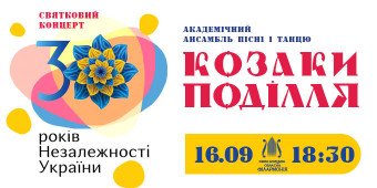 Академічний ансамбль пісні і танцю "Козаки Поділля" запрошує всіх хмельничан та гостей міста на святковий концерт до відзначення 30-річчя Незалежності України!