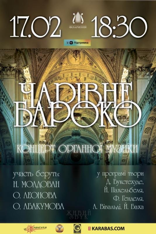 17 лютого, четвер о 18.30 запрошуємо на вишуканий вечір органної музики "ЧАРІВНЕ БАРОКО"!