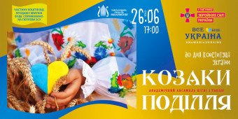 26 червня о 17.00 у Хмельницьку обласну філармонію, до Дня Конституції запрошує Академічний ансамбль пісні і танцю "Козаки Поділля"