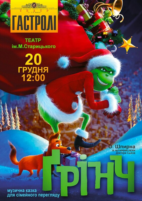 Сміх, музика, танці, драйв, яскраві костюми, чарівні декорації та справжнє диво — усе це чекає на вас у виставі Ґрінч!