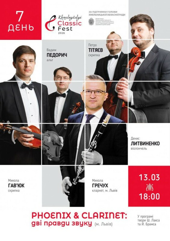 • Khmelnytskyi classic fest - 2026. День 7. «PHOENIX STRING QUARTET», Микола ГРЕЧУХ (кларнет, м. Львів)