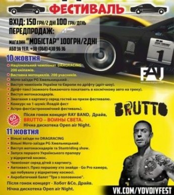 Гість фестивалю популярний гурт "BRUTTO". Окрім музичної часнини фестивалю у ці днівідбуватиметься Національний чемпіонат України DRAGRACING (200 екіпажів), трюки мотокаскадерів, дріфт-таксі, гастрономічний фестиваль, мотовиставка(200 учасників), змагання з картингу, автоквест, флешмоб, запальна дискотека та багато чого іншого.
