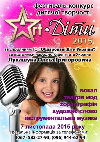 Фестиваль-конкурс "Арт-Діти, 2015" виступатимуть солісти, дуети, тріо, ансамблі, дитячі творчі колективи, віком від 4 до 18 років.