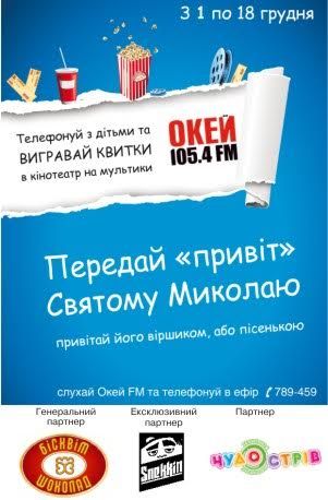 Саме з 4 по 18 грудня на радіостанції «Окей ФМ» в прямому ефірі дітвора зможе передати вітання Святому Миколаю.