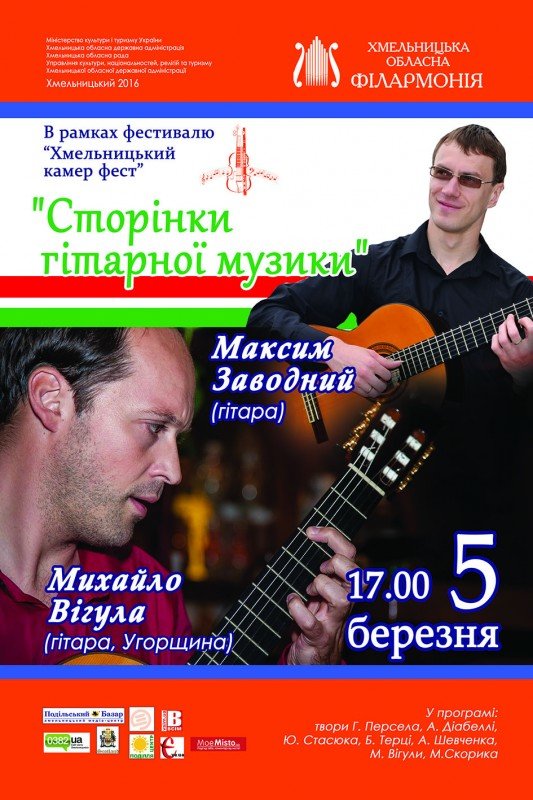 На хмельницькій сцені Михайло Вігула виступатиме у двох амплуа, презентуючи сторінки української гітарної музики та власні оригінальні твори. В концерті також бере участь соліст Хмельницької обласної філармонії Максим Заводний.