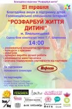 З нагоди святкування дня Європи благодійна ініціатива «Розфарбуй життя» запрошує і дорослих і малят на прекрасне дійство – благодійну акцію «Розфарбуй життя дитині» в підтримку Голенищівської спецшколи-інтернат.