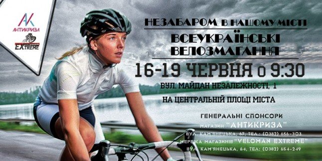 15–19 червня 2016 року у м. Хмельницькому пройде Відкритий чемпіонат України у багатоденній гонці з велосипедного спорту на шосе (юніорки, дівчата)