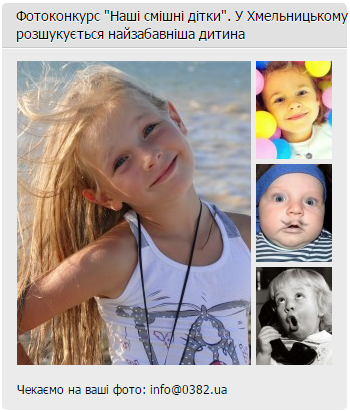 Сайт міста Хмельницького 0382.ua розпочинає фотоконкурс під назвою «Наші смішні дітки» https://www.0382.ua/photo/796