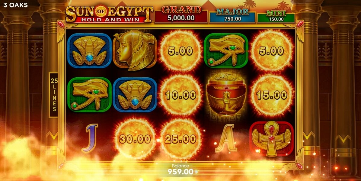 - Sun of Egypt 1 - проста механіка Hold and Win з 3 респінами і 3 джекпотами;