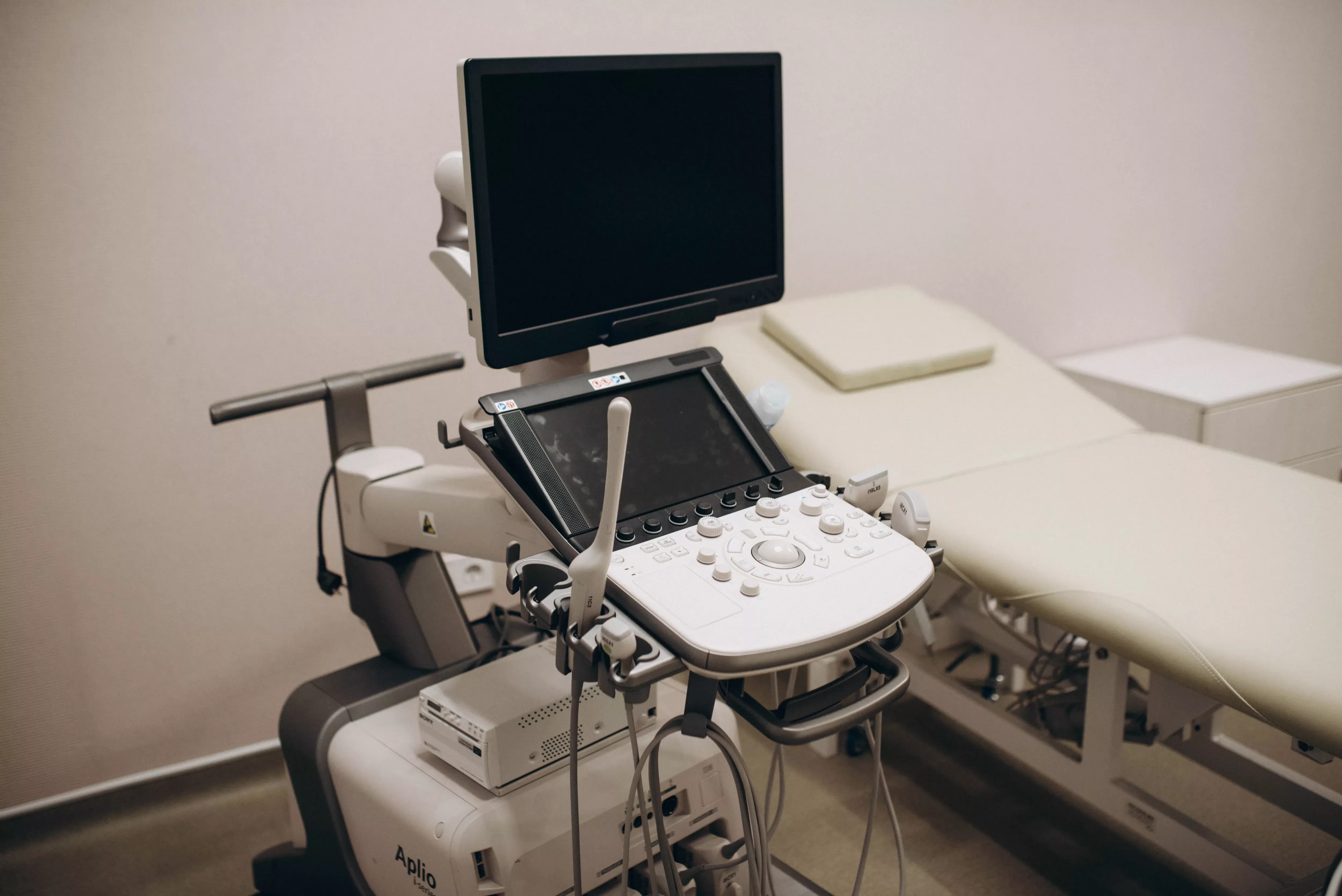 Лікар наносить спеціальний гель для покращення контакту датчика зі шкірою.