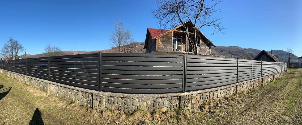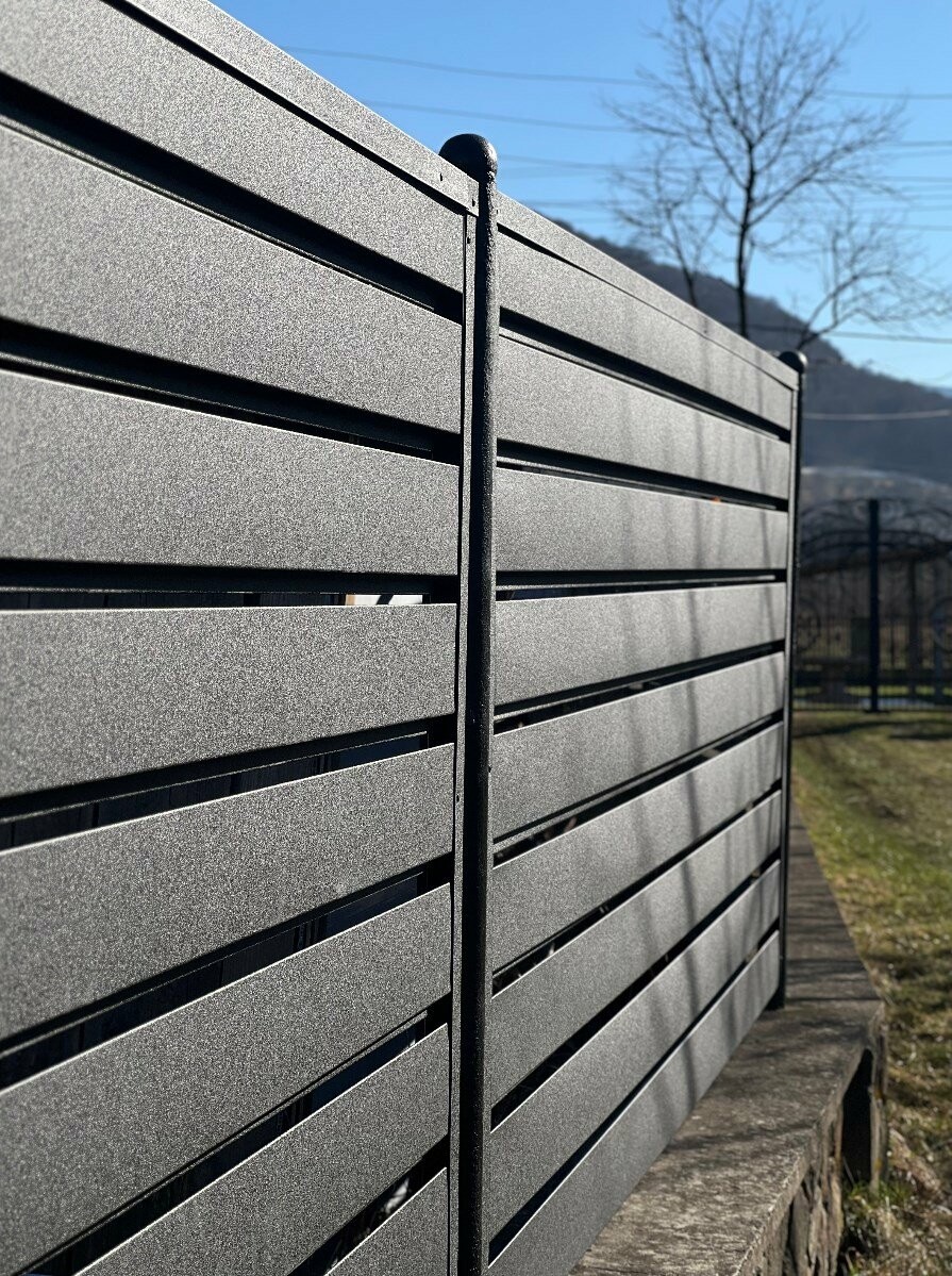Такий паркан, захищаючи територію, не створює відчуття замкненого простору, адже пропускає світло і повітря, а за допомогою регулювання відстані між ламелями, ви можете створювати як повністю прозорі секції, так і напівпрозорі, що забезпечують необхідний рівень приватності.