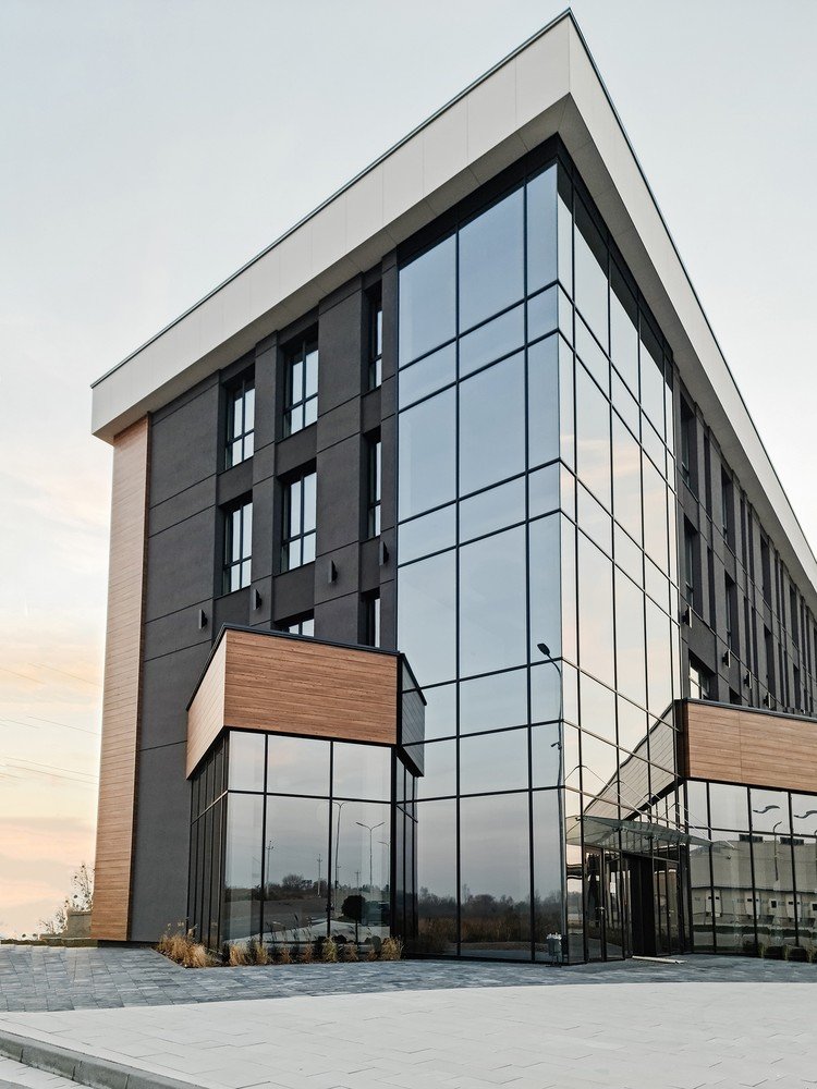 Скляний фасад одразу задає характер будівлі й формує враження про простір усередині. Прозорі площини впускають багато денного світла, візуально полегшують масив споруди, роблять силует стриманішим і легшим серед щільної міської забудови. У бізнес-центрах, приватних резиденціях, торгових і громадських обʼєктах саме скло допомагає поєднати виразний вигляд з комфортним мікрокліматом. Тому архітектори все частіше обирають рішення з алюмінієвим каркасом та енергоефективними склопакетами замість традиційних глухих стін. У такому форматі скління перетворюється на повноцінну захисну оболонку будівлі, а не лише на декоративний акцент. Конструкція працює як єдина система, у якій профілі, скло, ущільнювачі й фурнітура відповідають за теплоізоляцію, шумоізоляцію, безпеку, міцність і візуальну легкість фасаду.