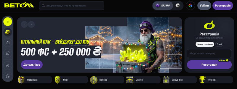 Beton виділяється серед інших казино завдяки широкому функціоналу та прозорим умовам. На сайті доступно понад 6 500 ігор від провідних провайдерів, включно з класичними слотами, настільними іграми та live-казино з реальними дилерами. Платформа підтримує українську мову, валюту UAH і пропонує зручний інтерфейс, який підходить як для новачків, так і для досвідчених користувачів. Реєстрація на сайті проста і складається з кількох кроків: