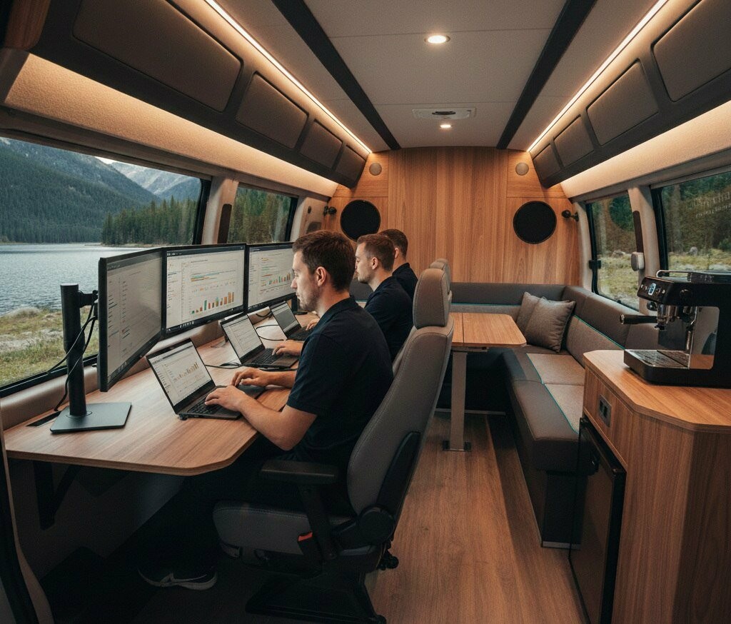 Наша IT-команда переконалася: продуктивність залежить від середовища. Замість оренди статичного офісу ми інвестували в мобільний коворкінг, що поєднує працю та подорожі. Наш вибір — Citroën Jumper L3H2. Його кубічна форма ідеальна для облаштування робочої зони, а реалізувати проєкт допомогли фахівці з BusMaster.