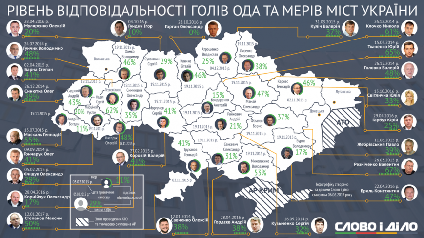 Відомий інтернет-ресурс визначив скільки відсотків обіцянок виконали мери українських обласних центрів та голови ОДА.